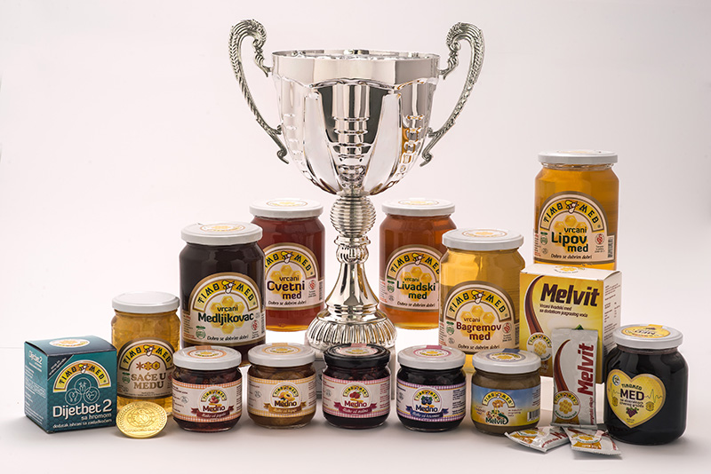Zlatna medalja Novosadskog sajma 2009. godine za med sa suvim voćem.