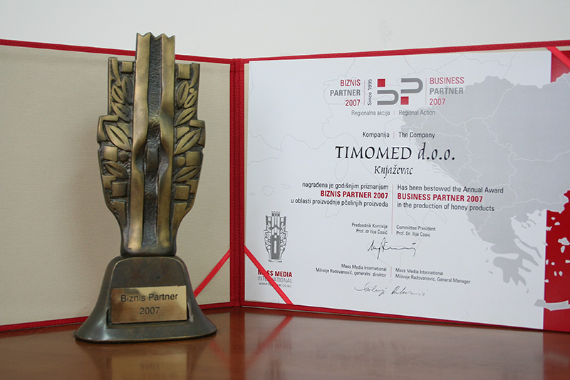 Diploma sa plaketom Privredne komore Srbije za 2002. godinu, za postignute rezultate u razvoju i unapređenju privrede. Zlatna medalja novosadskog sajma 2009. godine za vrhunshi kvalitet meda i širok asortiman proizvoda.